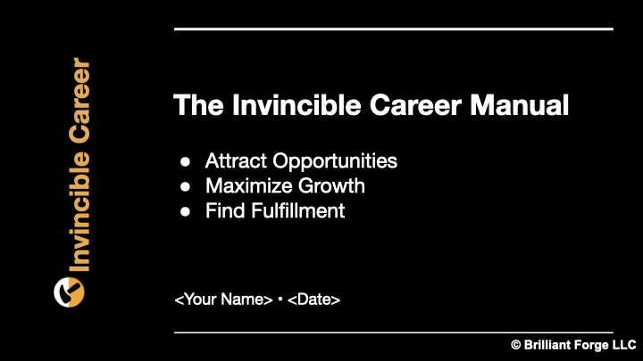 The Invincible Career Manual is a living document that guides you in designing a career that will give you the life you want. The questions and exercises will help you clearly define your goals, plans, and strategies to position yourself as one of the best at what you do.